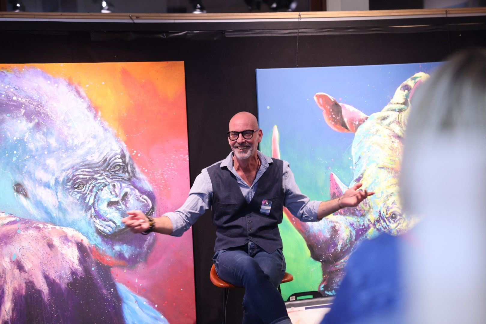 Übrigens malt Alain am liebsten Tiere, da sie im Gegensatz zu vielen Menschen keine Masken tragen. Wenn euch das interessiert, könnt ihr Alain gerne in seinem Atelier besuchen. Er freut sich immer über Gäste, und wir können euch versichern, dass sich das Gespräch lohnen wird.